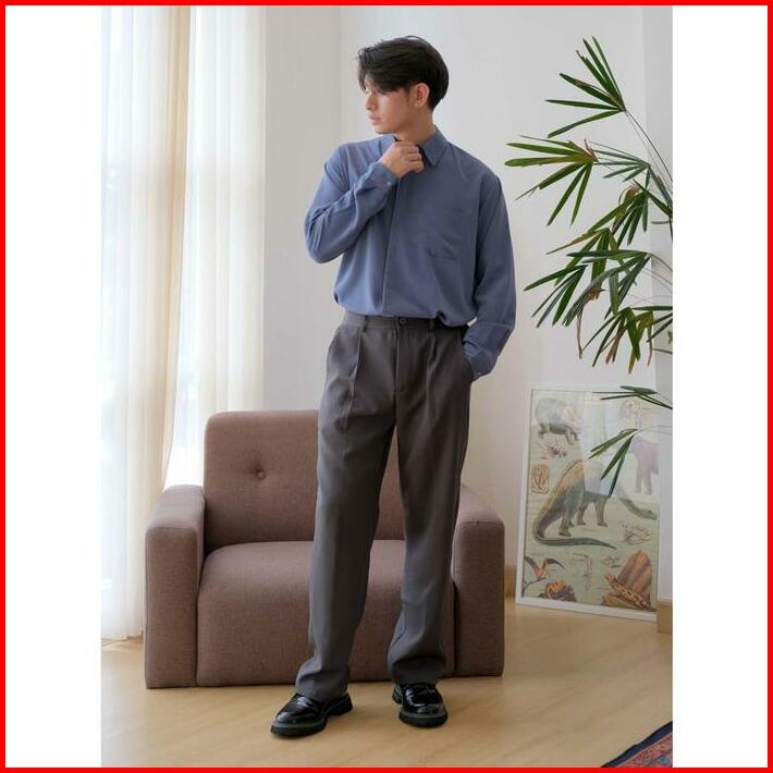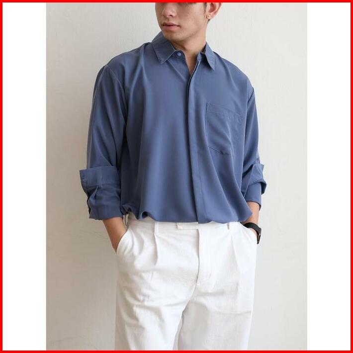 Cozyclub Relaxed Oversized Shirt Kemeja Polos Oversize Pria Lengan Panjang
