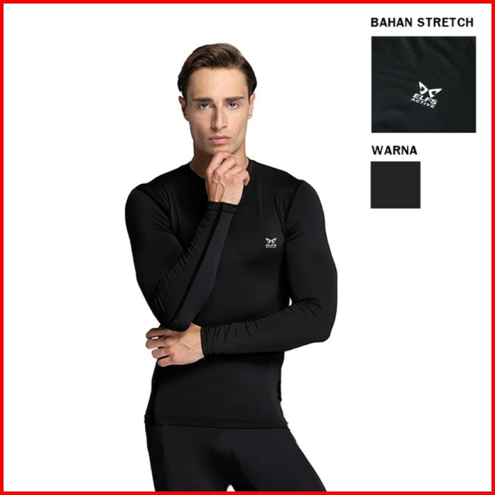 Compression Long Sleeve Shirt Kaos Gym Baselayer Pria Dry Fit