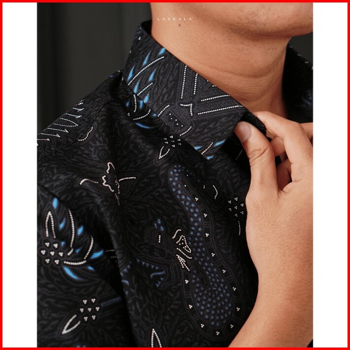 Laskala Premium Batik Slimfit Pedro Hitam Lengan Pendek K08b321