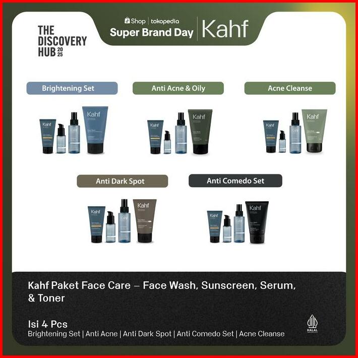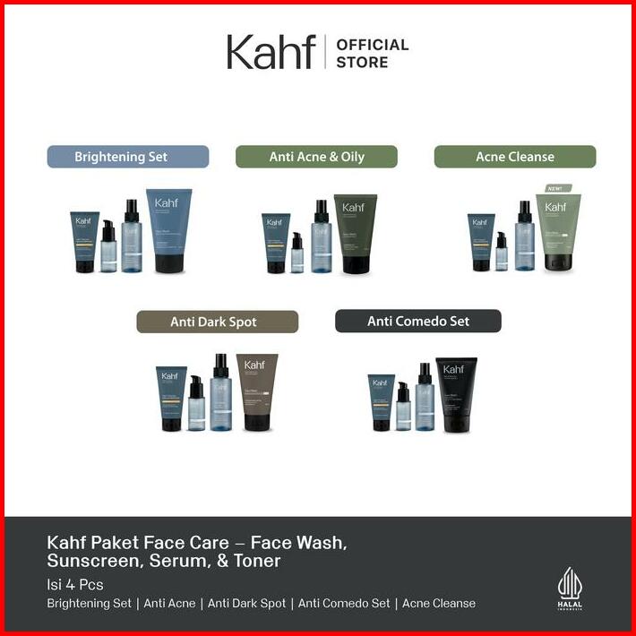 Kahf Paket Face Care Expert Complete Kit Isi 4 Face Wash Toner Serum Sunscreen Moisturizer
