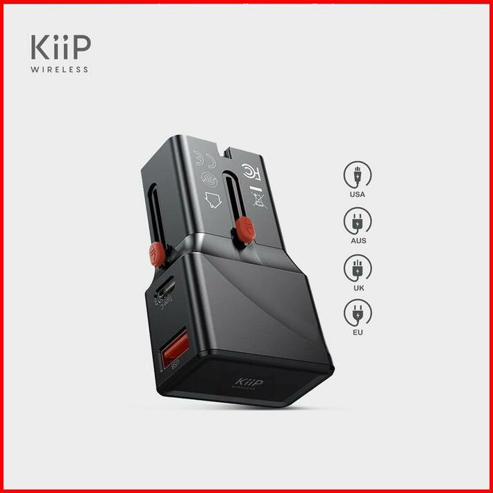Kiip Wireless C24t Universal Travel Adaptor Charger Mini Fast Charging 25w Pd Qc