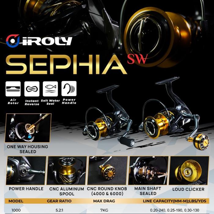 Reel Iroly Sephia SW 1000,2000,3000,4000,6000 Power handle - Hitam, 1000