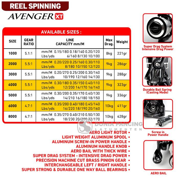 Reel Spinning MAGURO AVENGER XT 7+1 Ball Bearing Power Handle - 2000