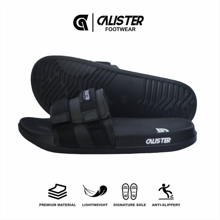 Gratis Ongkir - Calister - Sandal Pria Selop Distro Strap Aesthetic Hitam