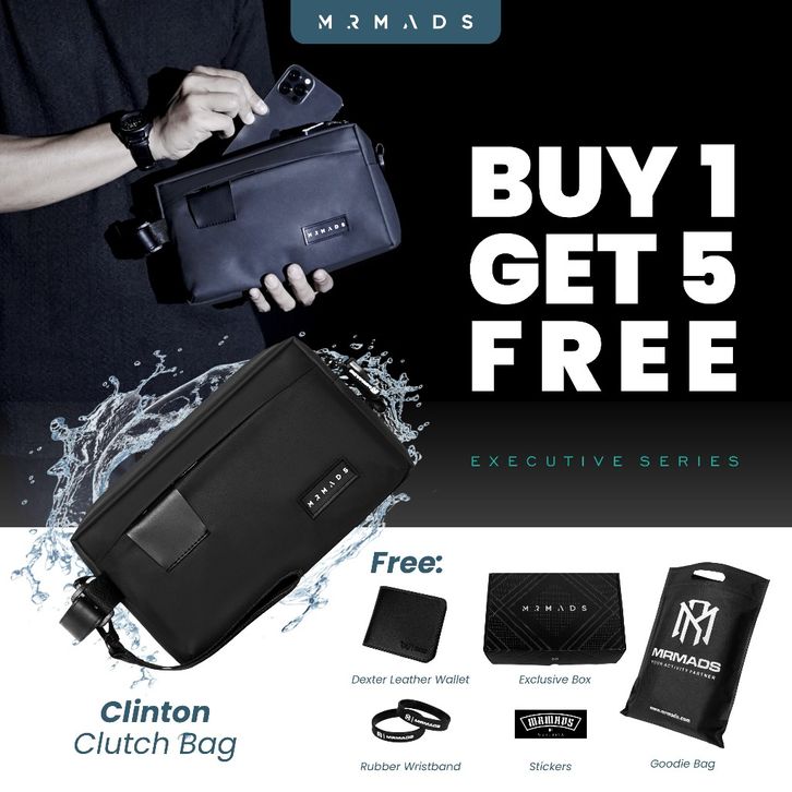 Gratis Ongkir - Mr Mads - Sling Bag Pria Clinton Clutch Bag Multyfungsi 3 in 1 Hand Bag Cowok Waterproof Tas Tangan