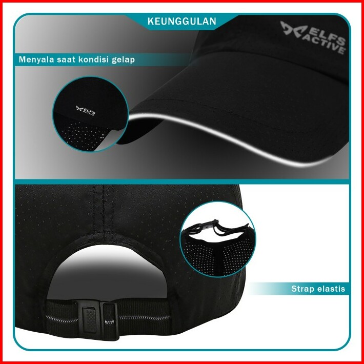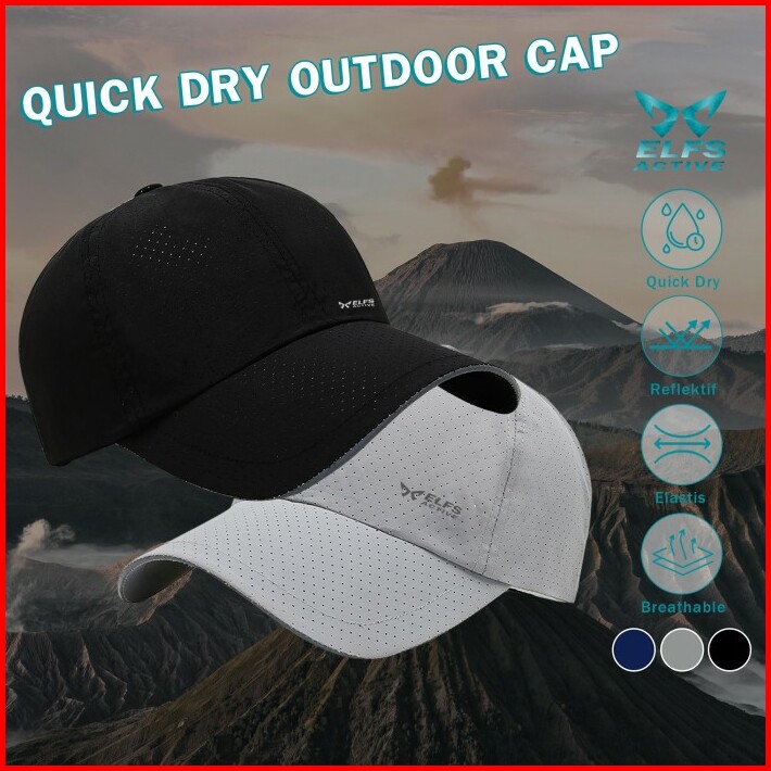 Elfs Active Quick Dry Baseball Cap Topi Olahraga Breathable Reflective