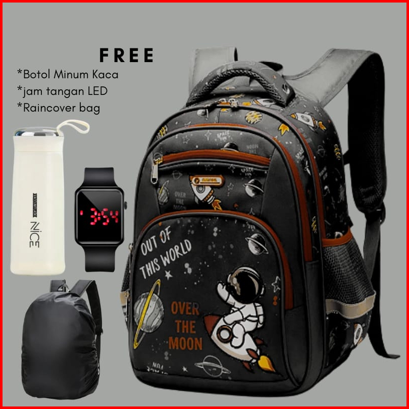 Tas Ransel Karakter Astronot Terbaru Tas Sekolah Anak Pria Sd Smp Sma Backpack Sekolah Free Botol Minum Free Jam Tangan
