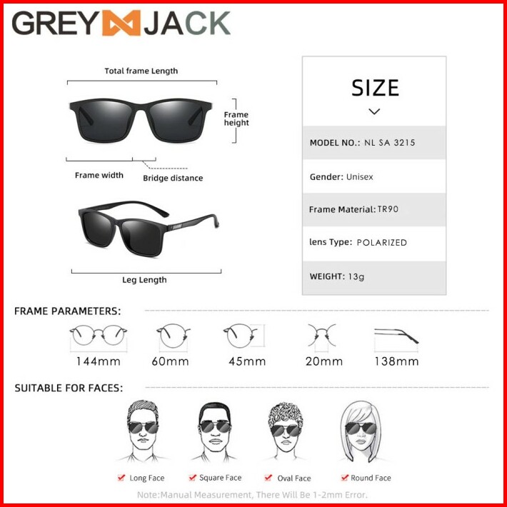 Grey Jack Kacamata Sunglasses Polarized Anti Uv400 Bahan Tr90 3215