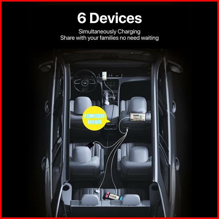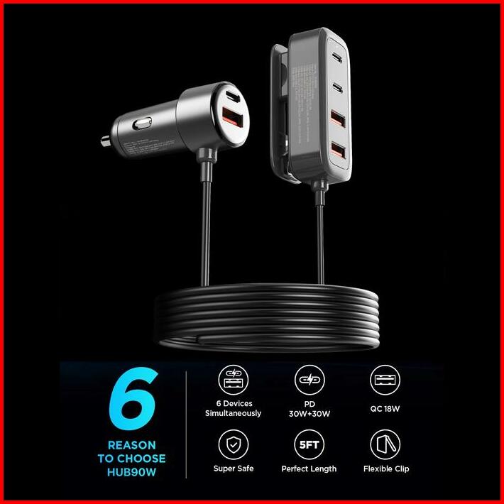 Kiip Wireless Hub90w Car Charger Mobil 90w Ultra Fast Charging 6 Ports Type-c Usb Adapter Pd Qc