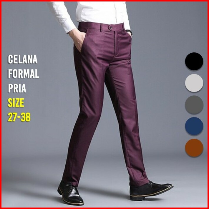 Celana Kantor Pria Slim Fit Katun Coklat Tua Cln 783