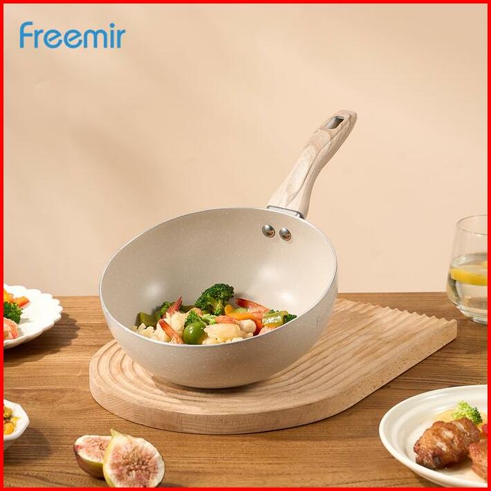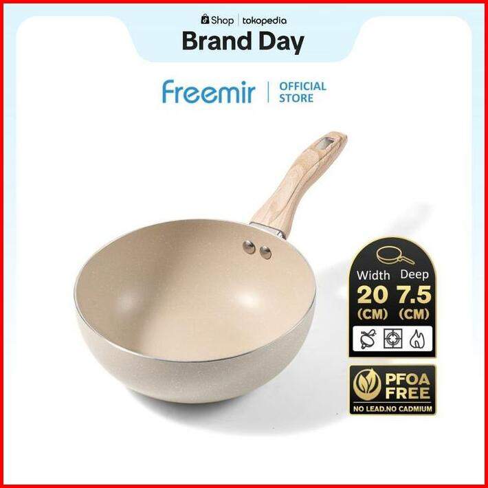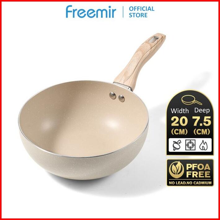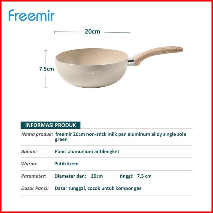 Freemir X Raisahouse Freemir Panci Susu Mpasi 20cm Panci Rebus Mie Multifungsi Anti Lengket Wok Pan Beige Kitchenware