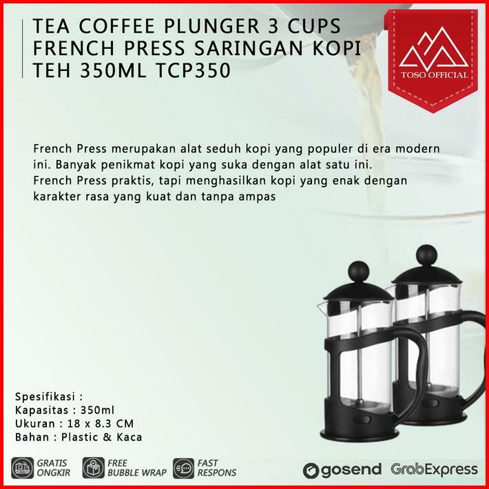 Tea Coffee Plunger 3 Cups French Press Saringan Kopi Teh 350ml Tcp350