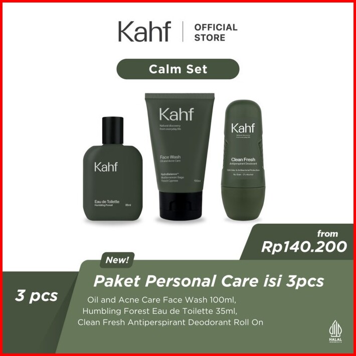 Kahf Paket Personal Care Isi 3pcs - Calm Set - Wash Oil Acne Humbling Deodorant Cleanfresh