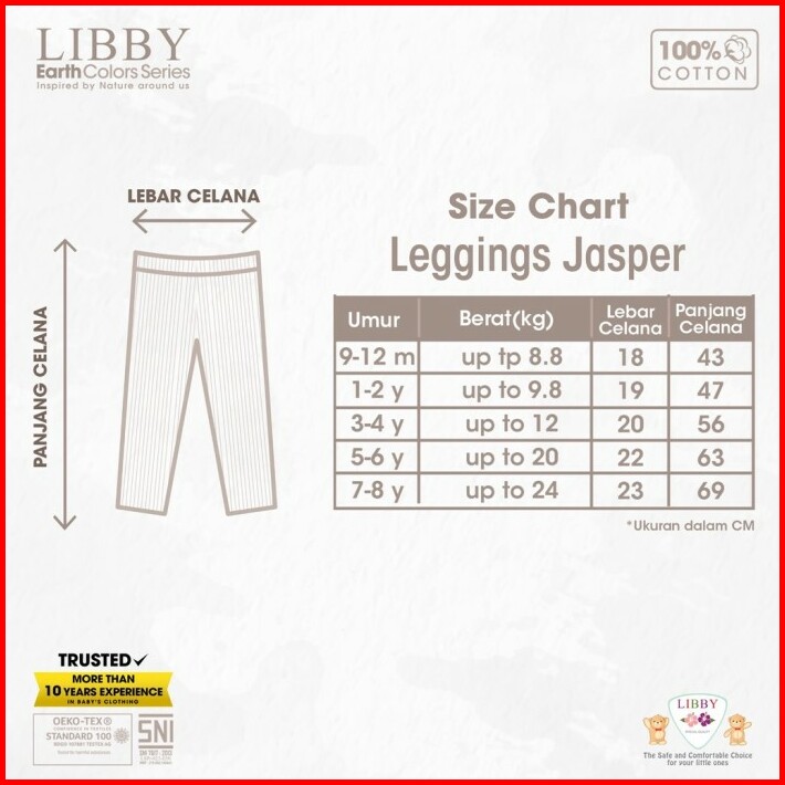 Libby Earth Colour Legging Jasper Unisex 0-6 Tahun 1pcs