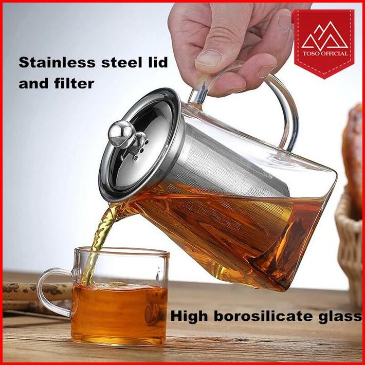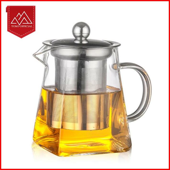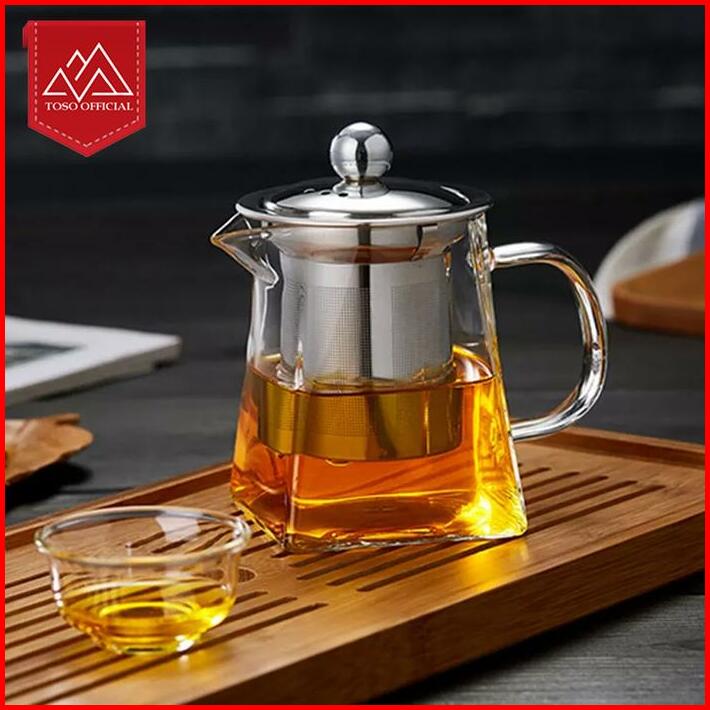 Teko Chinese Teapot 350ml Square Glass With Tea Infuser Filter Teh Pot