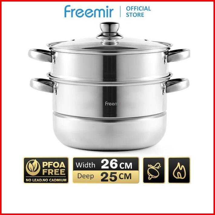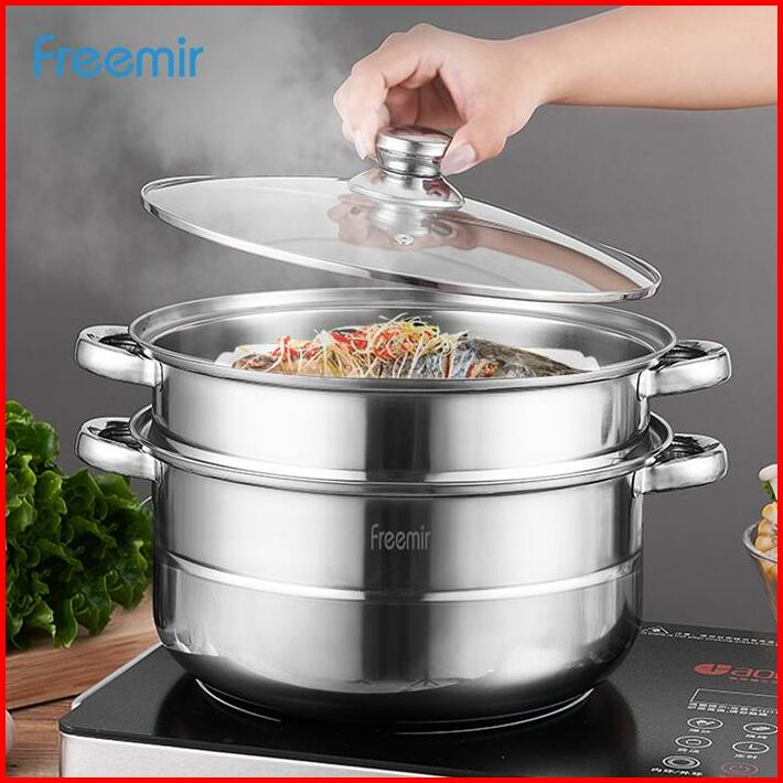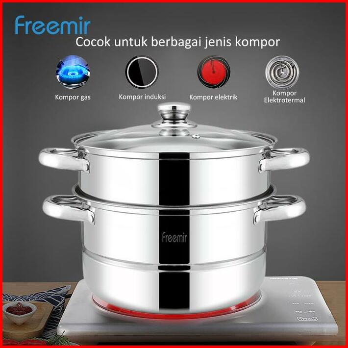 Freemir Panci Stainless Steel 2 Level Susun Pengukus Serbaguna Steamer Perebus Kitchenware