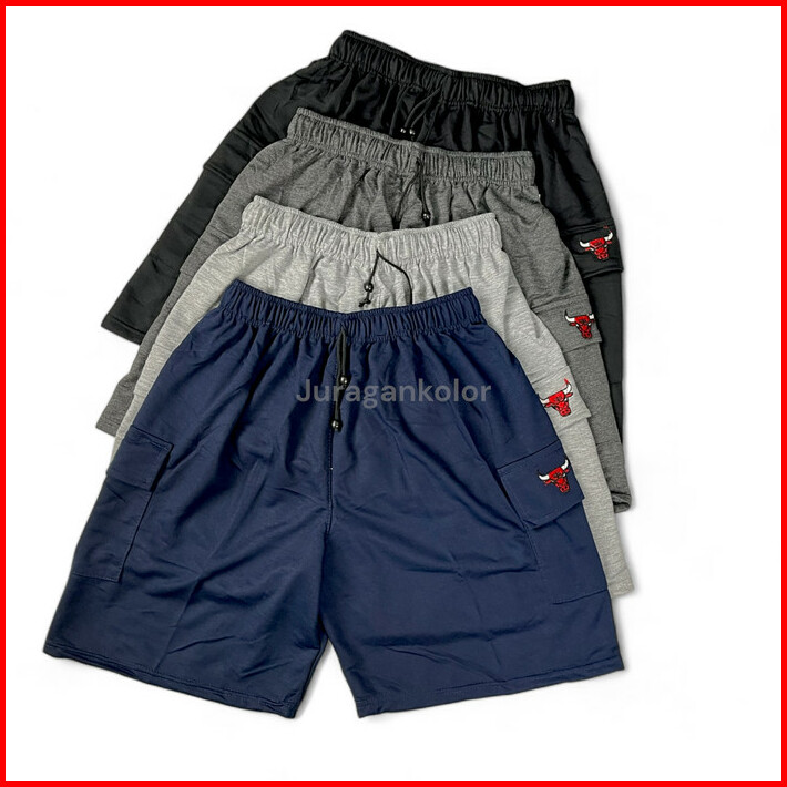 Celana Pendek Pria Cargo Saku Samping Santai Kolor Cowok Polos Kaos Baby Terry Adem Nyaman