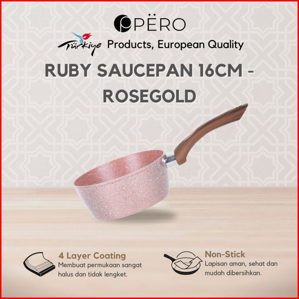 Pero Ruby Sauce Pan 16cm Biogranite With Wooden Handle Saucepan Milkpan 16cm Anti Lengket Panci Susu Panci Mpasi Serbagu