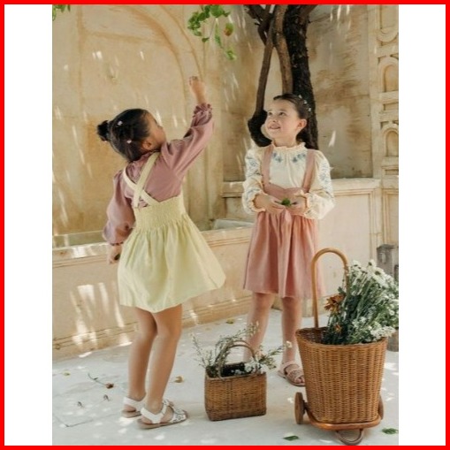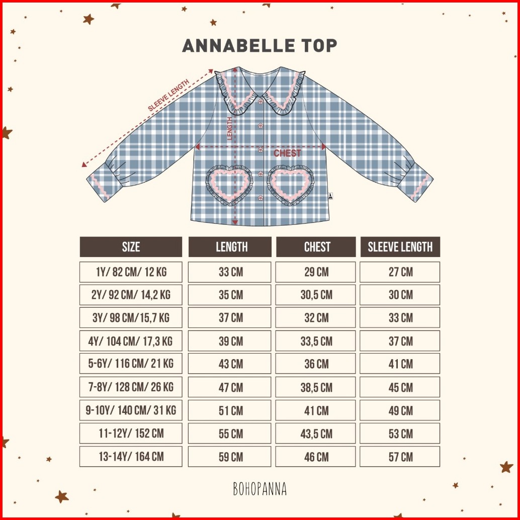 Bohopanna 1-14 Tahun Annabelle Long Top Sleeve Atasan Lengan Panjang Bordir - Blouse Kerah Kotak Kotak Ruffle Pocket Hea