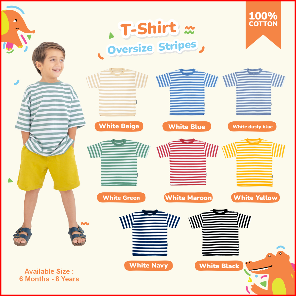 Little Me - Kaos Oversize Anak Laki Laki Strip Salur Usia 6 Bulan - 8 Tahun
