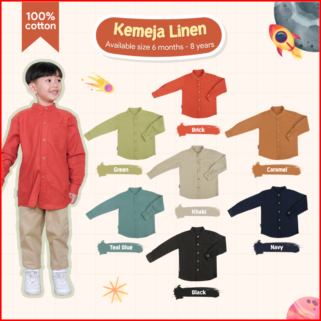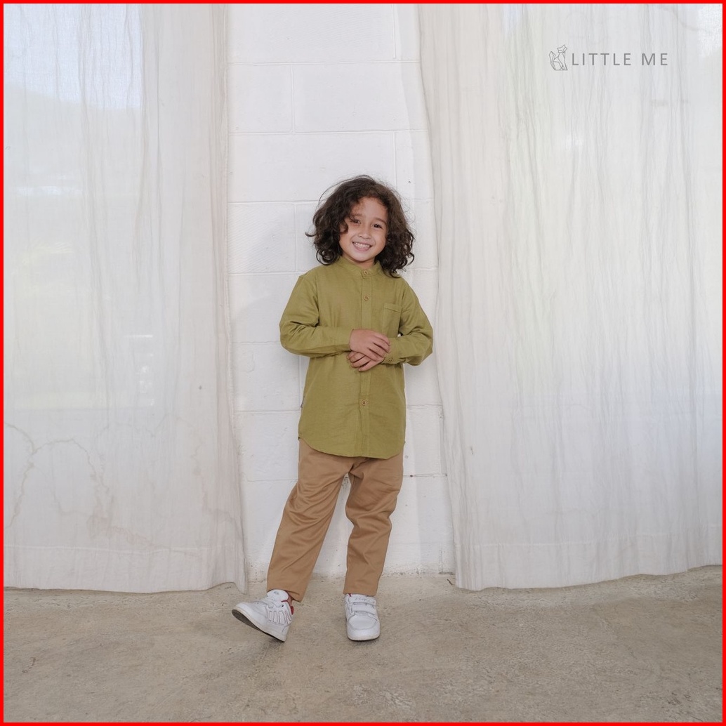 Little Me - Kemeja Anak Dan Bayi Laki Laki Kemeja Koko Linen Lengan Panjang Usia 6 Bulan - 8 Tahun