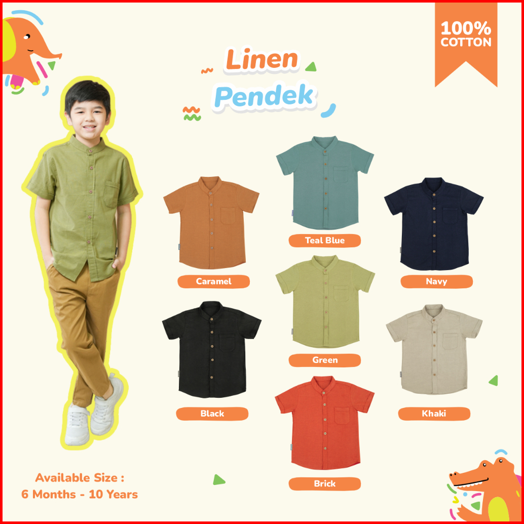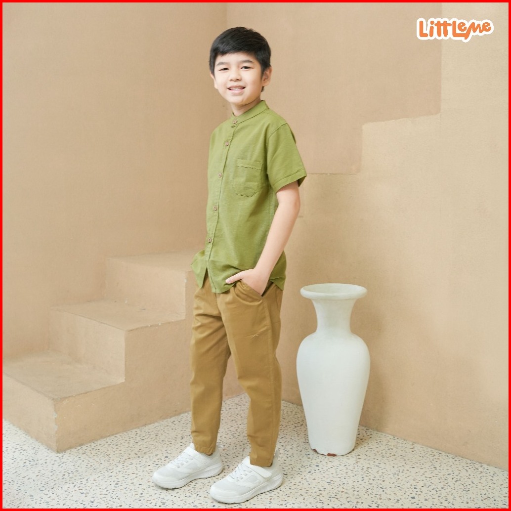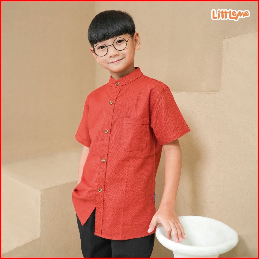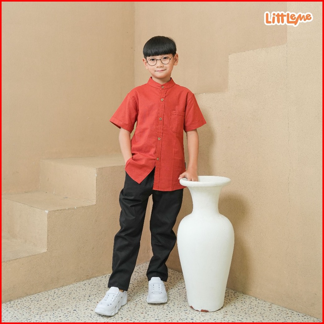 Little Me - Kemeja Anak Laki Laki Kemeja Koko Linen Lengan Pendek Usia 6 Bulan - 8 Tahun