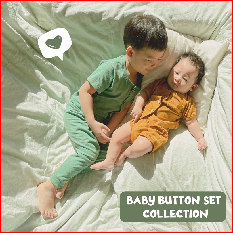 Little Me - Setelan Bayi Baby Button Set Short Pants Baby Set Celana Pendek Piyama Bayi Lengan Pendek Pakaian Bayi Setel