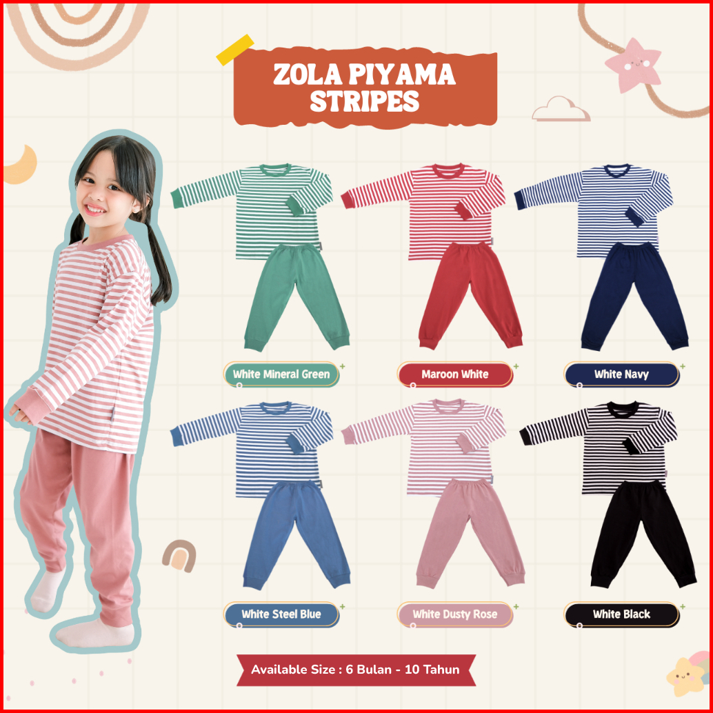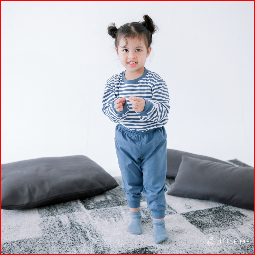 Little Me - Piyama Anak Salur Zola Usia 6 Bulan - 8 Tahun Setelan Baju Tidur Anak Bahan Kaos