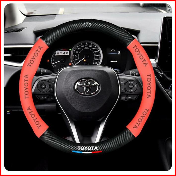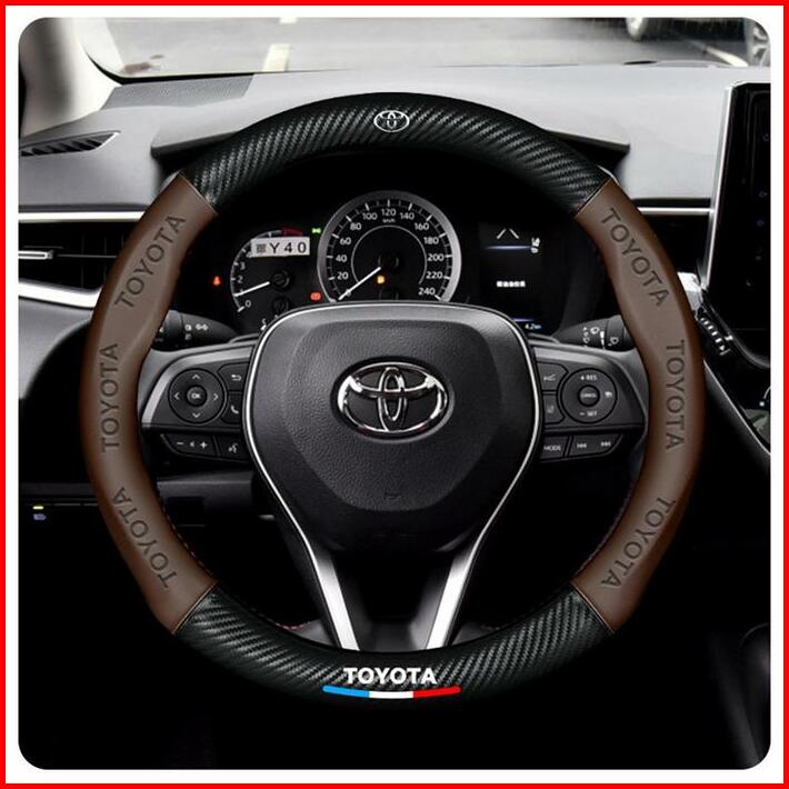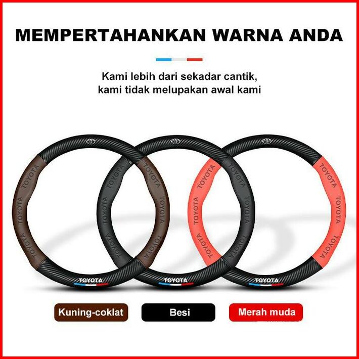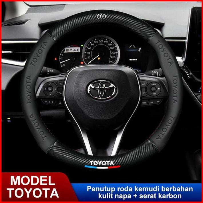 Sarung Stir Mobil Logo Brand Cover Steer Carbon Karbon Sport Kulit Domba Asli Original Toyota Premium