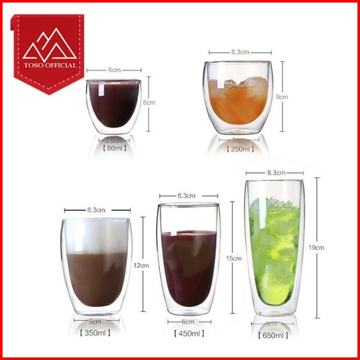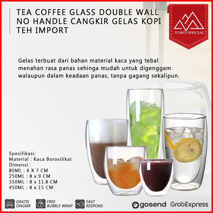 Tea Coffee Glass Double Wall No Handle Cangkir Gelas Kopi Teh Import