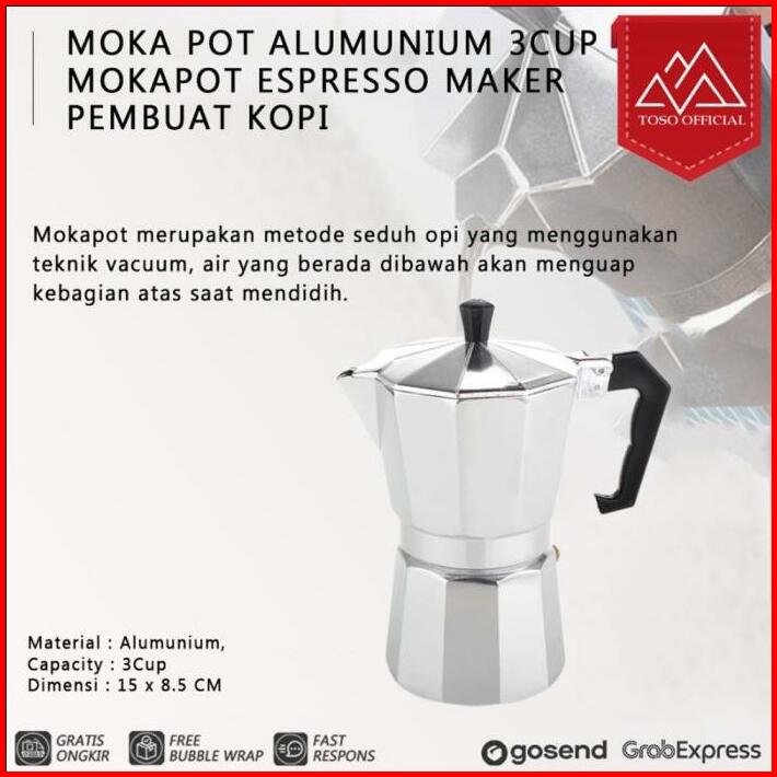 Silver Mokapot Alumunium 3 Cup Moka Pot Coffee Espresso Kopi