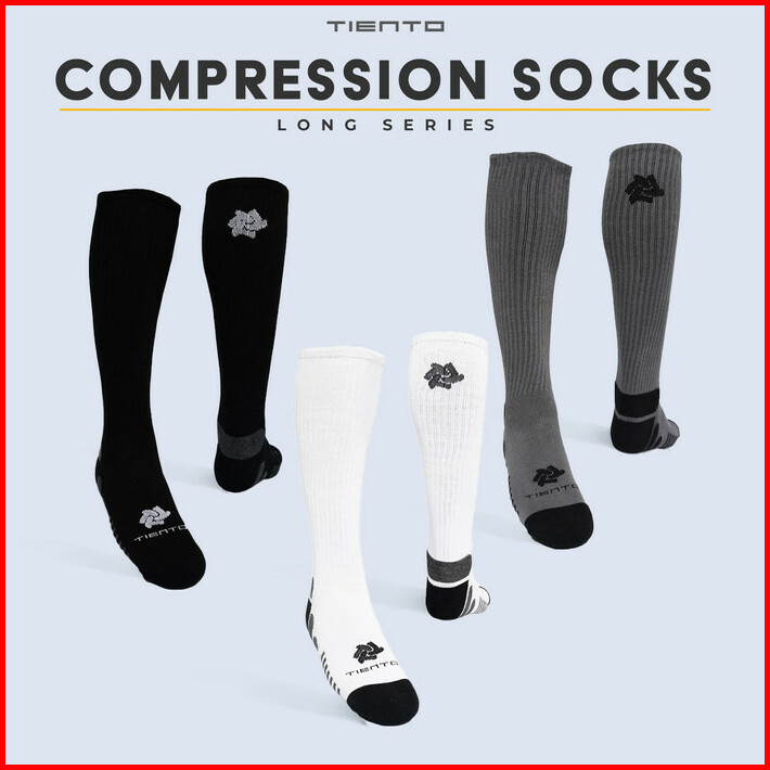 Tiento Long Compression Socks Black Kaos Kaki Olahraga Ketat Panjang