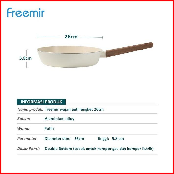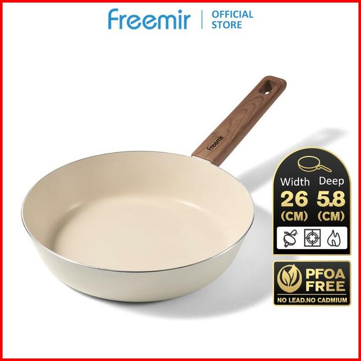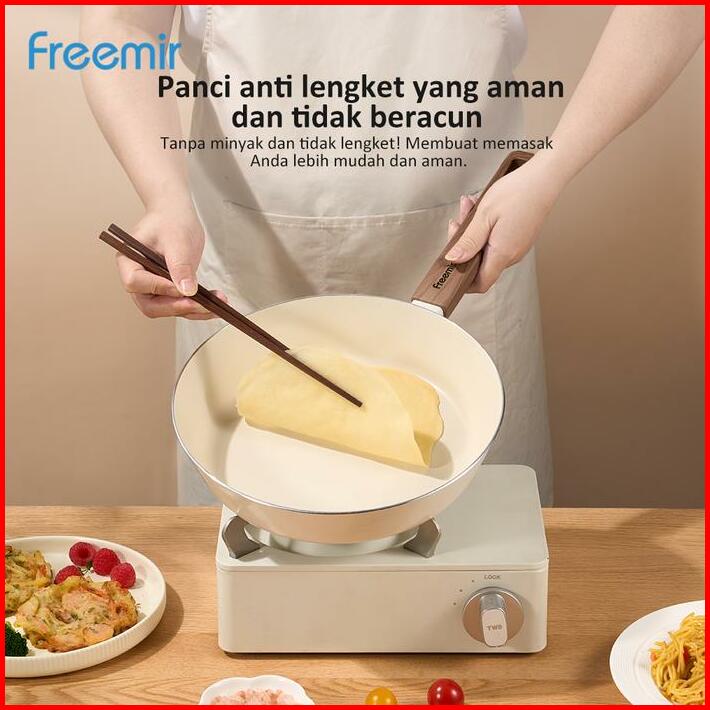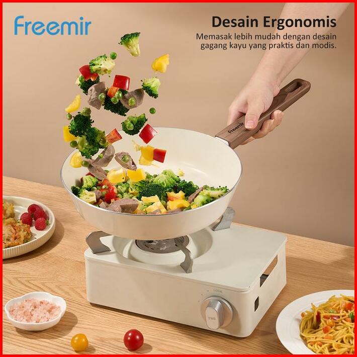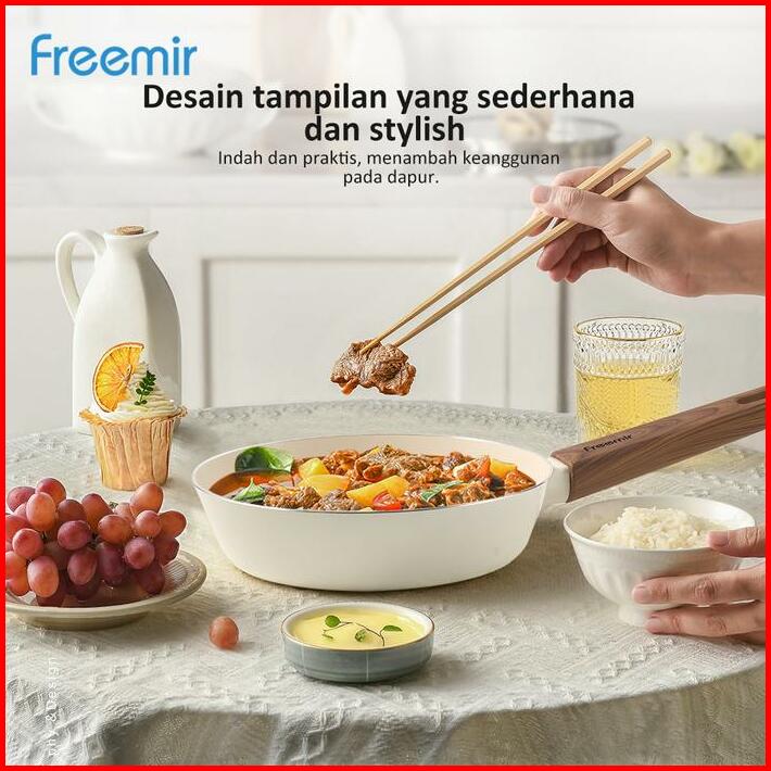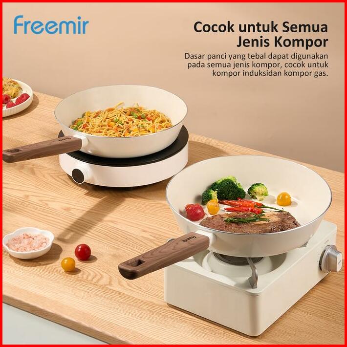 Spesial Freemir Ceramic Stove Wokpan Premium 26 Cm Putih Wajan Anti Lengket Double Bottom Gagang Kayu Serbaguna Multifun