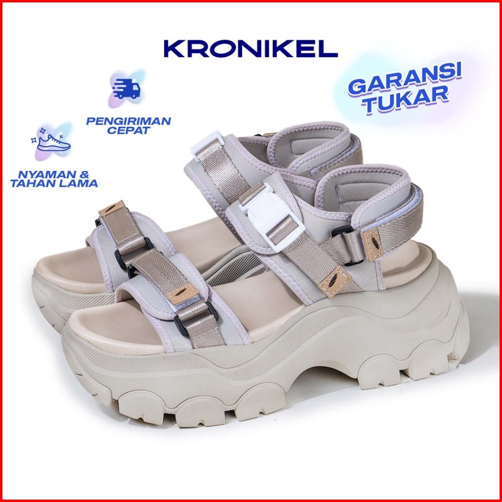 Kronikel Osaka Sandal Tinggi Tali Wanita Chunky Concert Sandal Hojicha