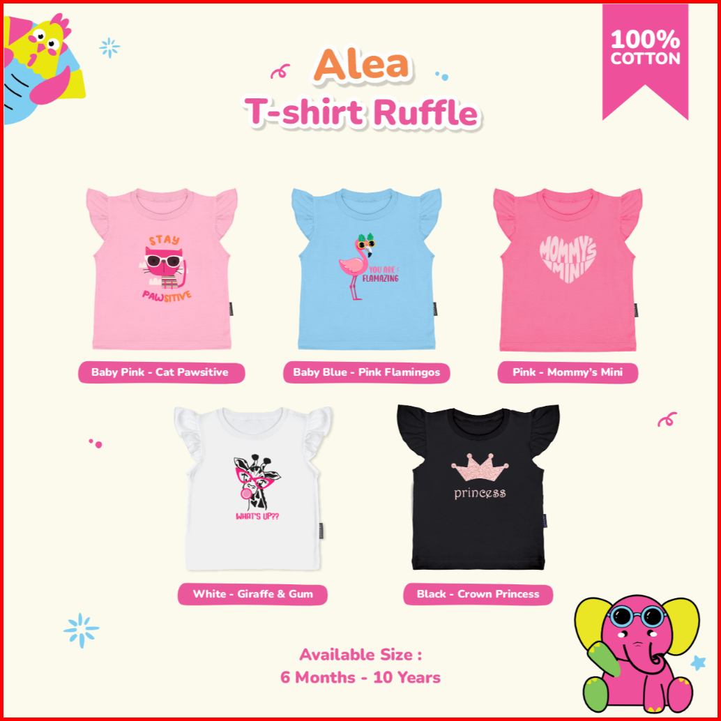 Little Me - Kaos Anak Perempuan Anak Perempuan Usia 6 Bulan - 10 Tahun Ruffle Alea