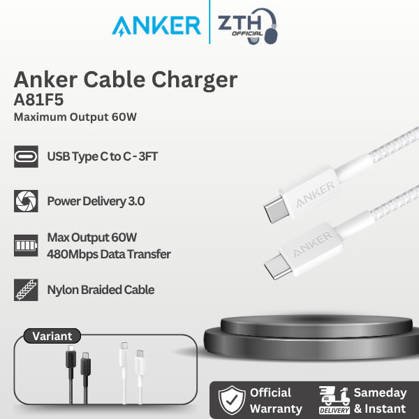 Anker 322 Kabel Charger 60W 3A USB Type C to C Nylon Cable 3FT - A81F5