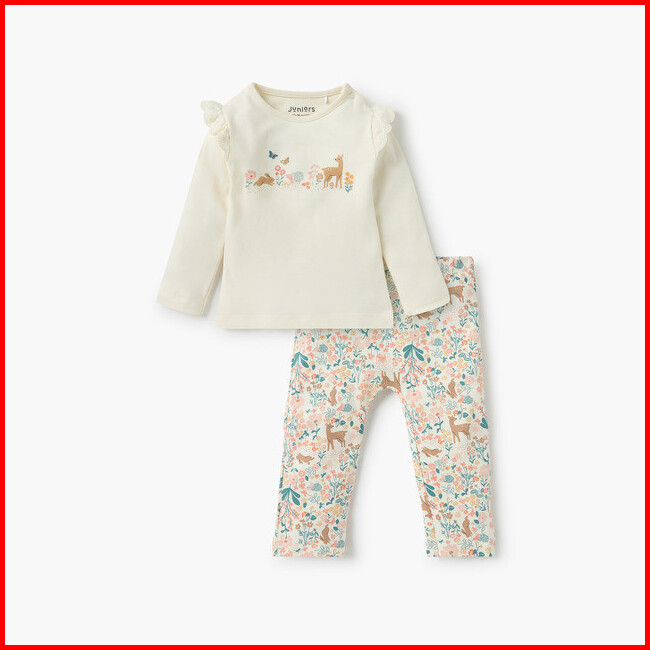Babyshop Juniors Baju Anak Perempuan Animal Print Ruffle Detail T-shirt And Pyjama Set
