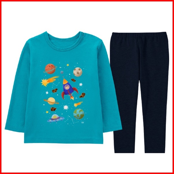 Naked Free Piyama Baju Tidur Anak Seri Luar Angkasa Usia 2 Sampai 8 Tahun Bahan Katun Combed 30s