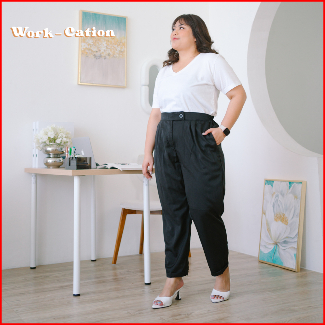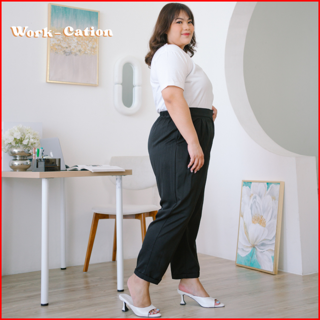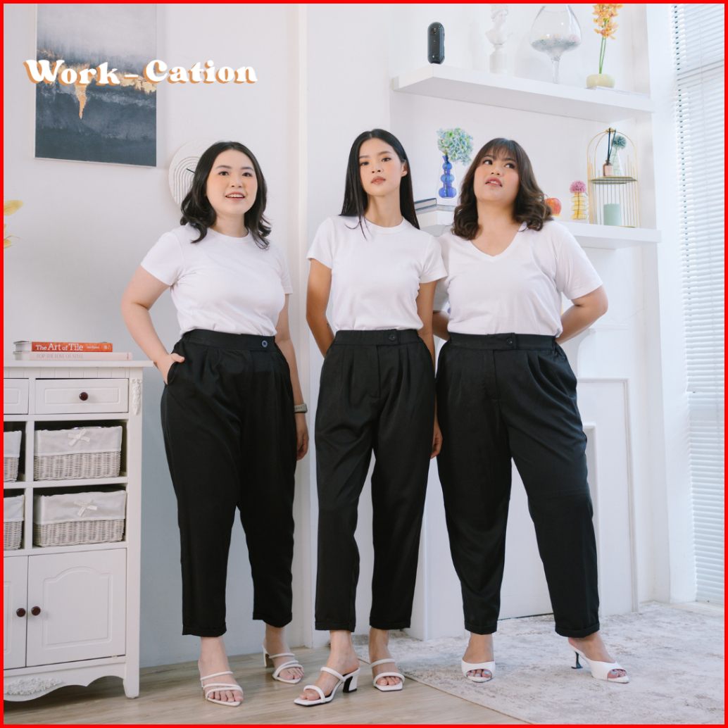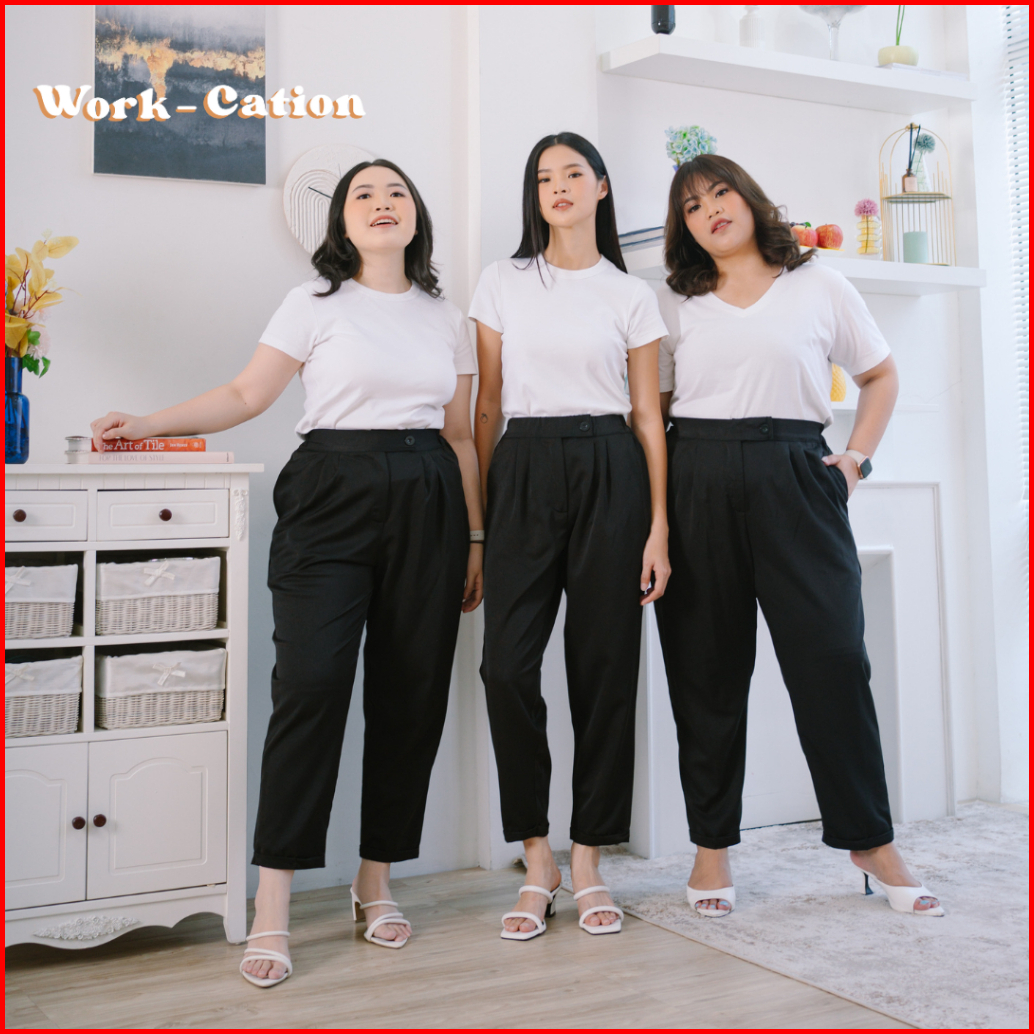 Ie.demode Yurin Celana Panjang Wanita Kerja Kantor Jumbo Pants Slimfit Bahan Allya Warna Hitam