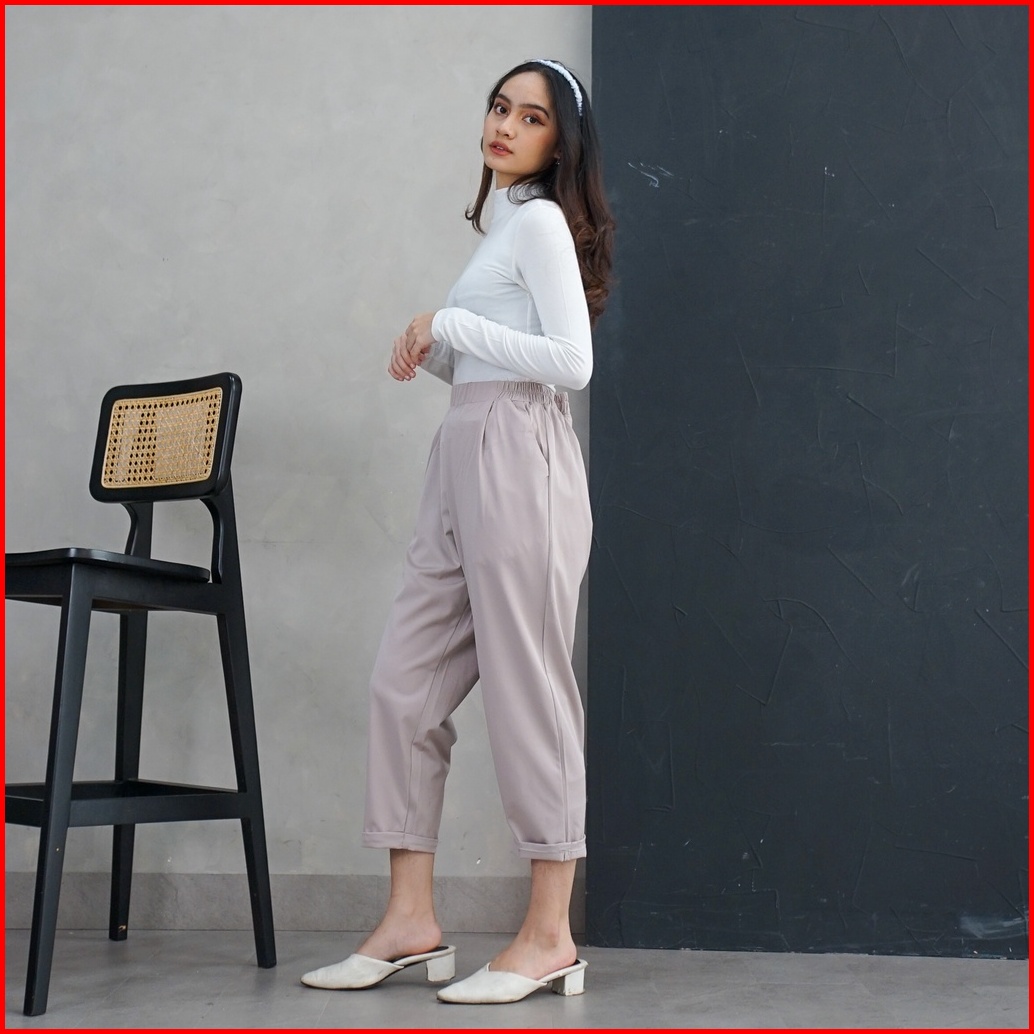 Ie.demode Karin Celana Panjang Wanita Daily Kerja Kantor Big Size Highwaist Baggy Pants Earth Gray