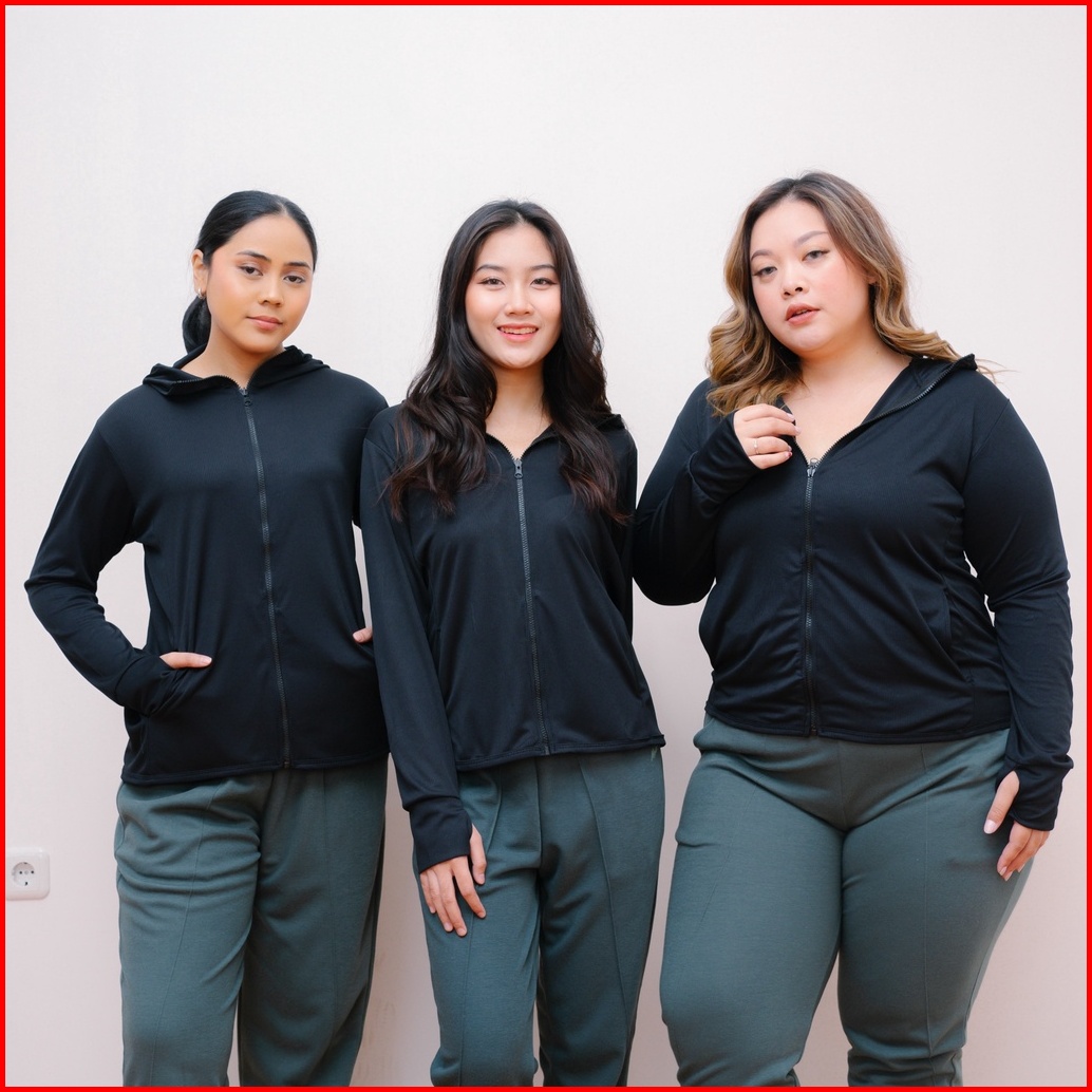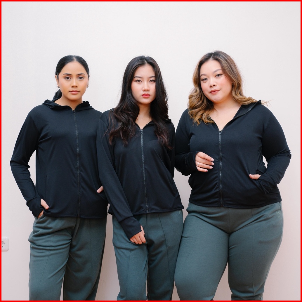 Ie.demode Jaket Olahraga Running Fitness Wanita Outer Sport Breath Technology Polos Hitam