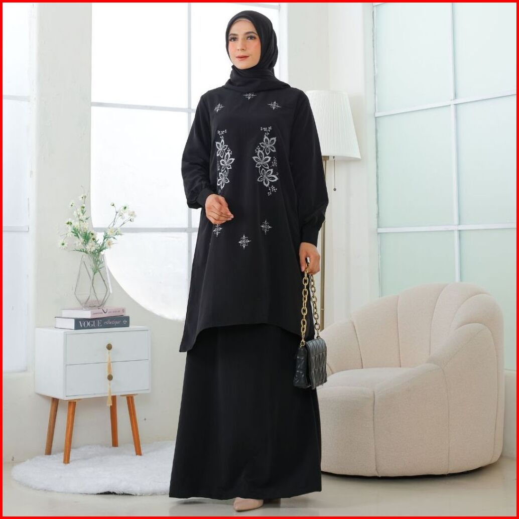 Iris Tunik Set Bordir - One Set Tunik - Tunik Skirt - Baju Kurung Malaysia - Tunik Bordir - One Set Tunik Wanita - One S