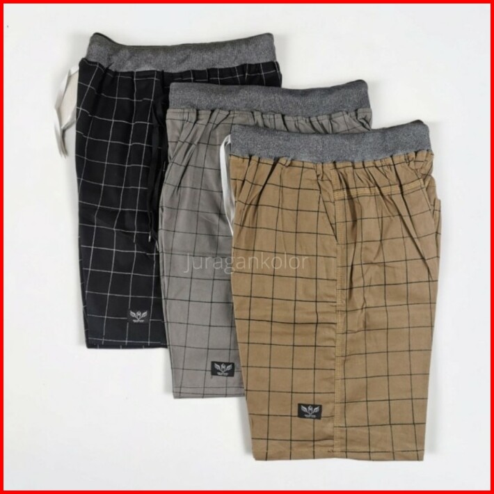 Celana Pendek Pria Dewasa Motif Kotak Tartan Chino Combed Katun Melar