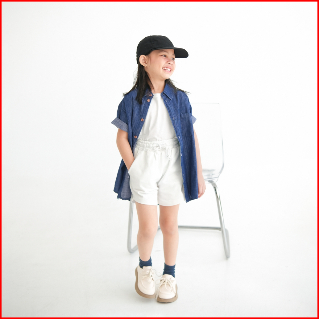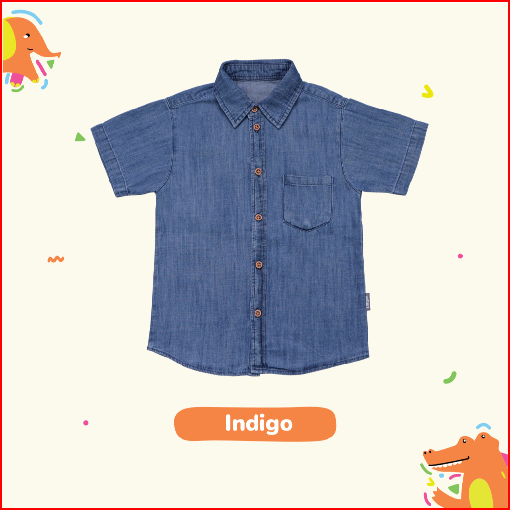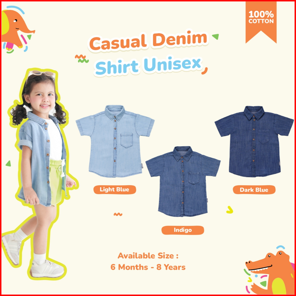 Little Me - Kemeja Anak Laki Laki Perempuan Casual Denim Shirt Unisex Usia 6 Bulan - 8 Tahun