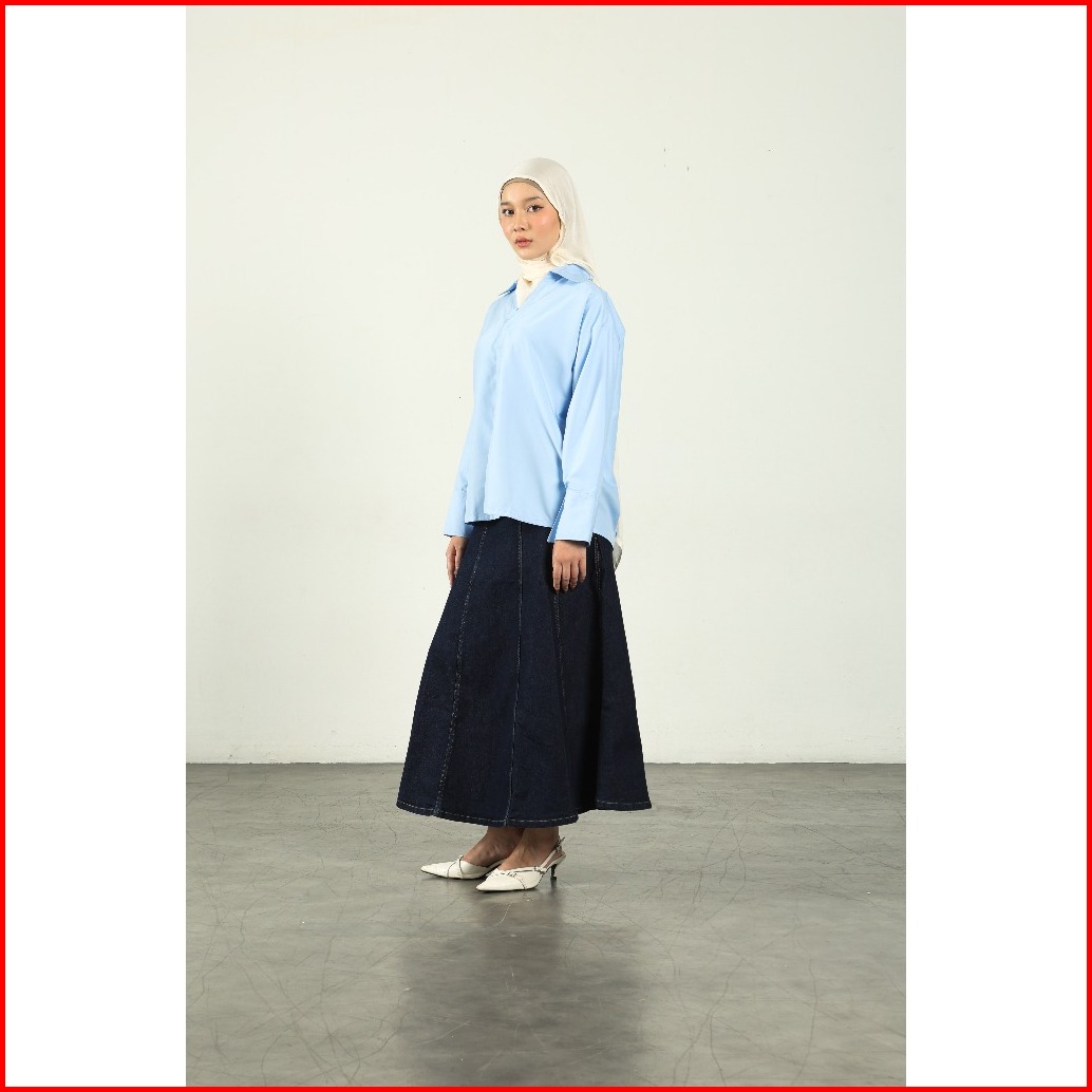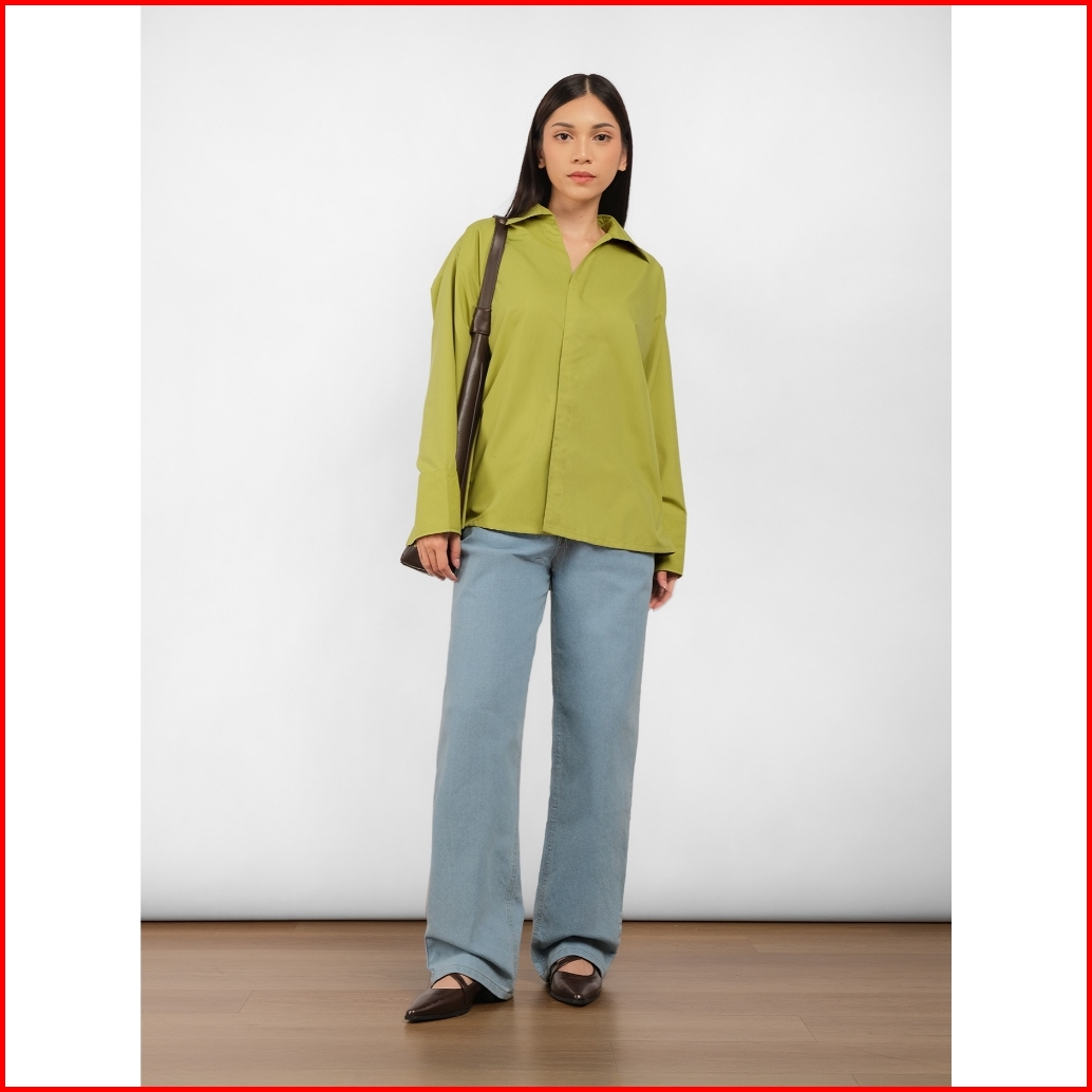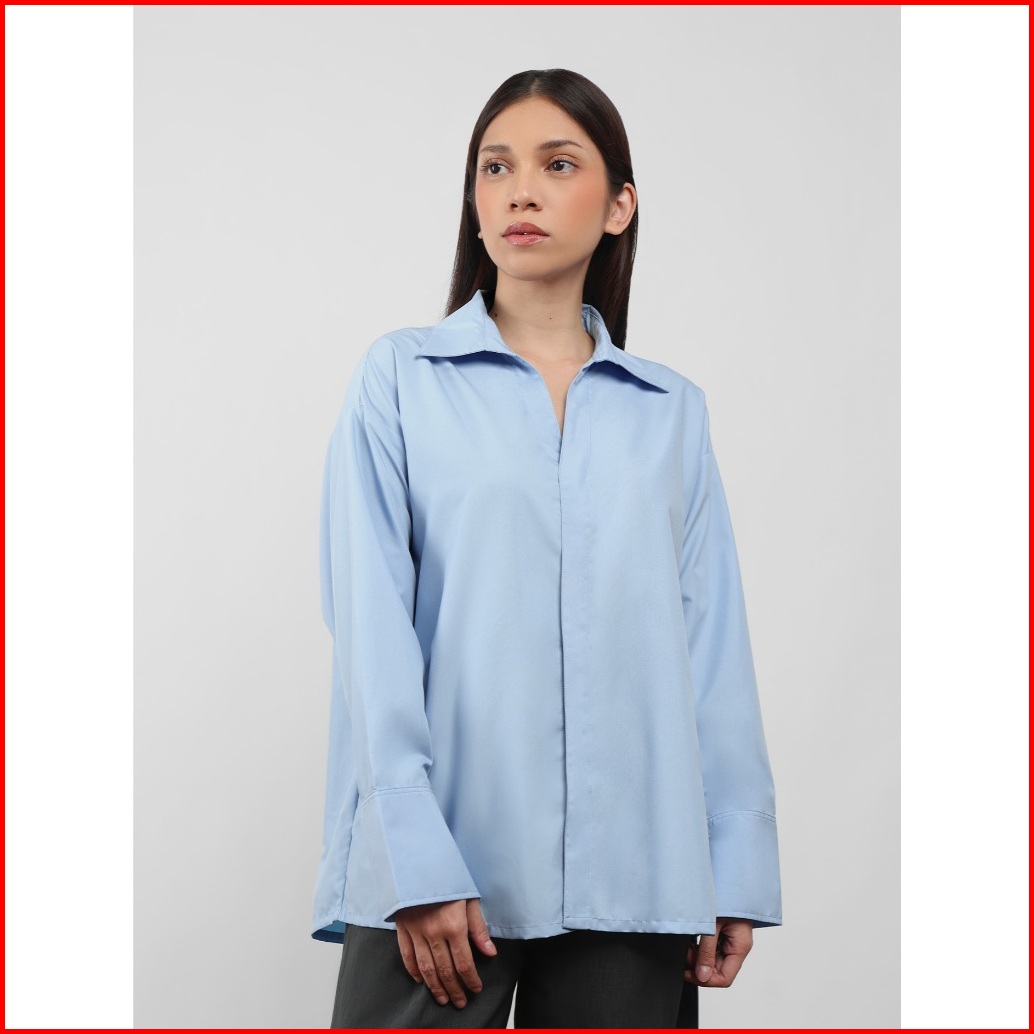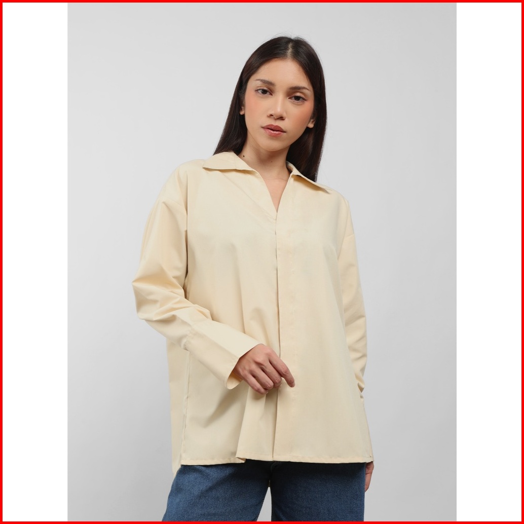 Thenblank V Neck Collar Shirt Kemeja Atasan Wanita