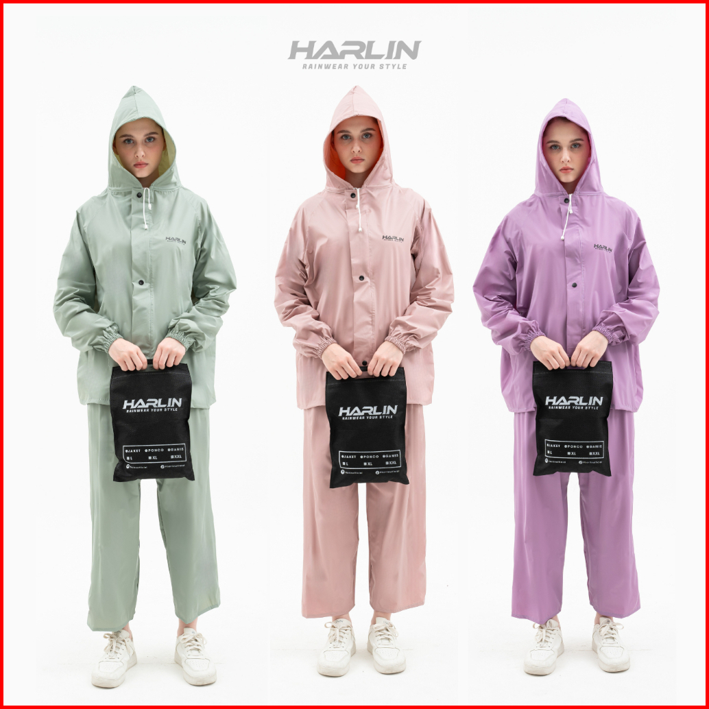 Jas Hujan Wanita Pria Dewasa Raincoat Setelan Bahan Kuat Tebal Elastis Anti Rembes