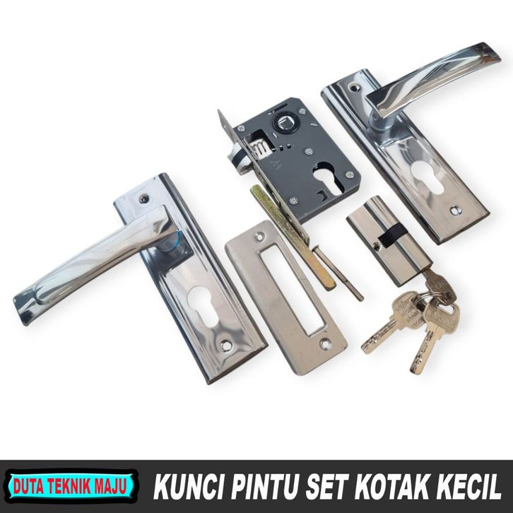 Kunci Pintu Set Komplit Silver 15 CM | Gagang Kotak | kunci pintu Kecil Chroom
