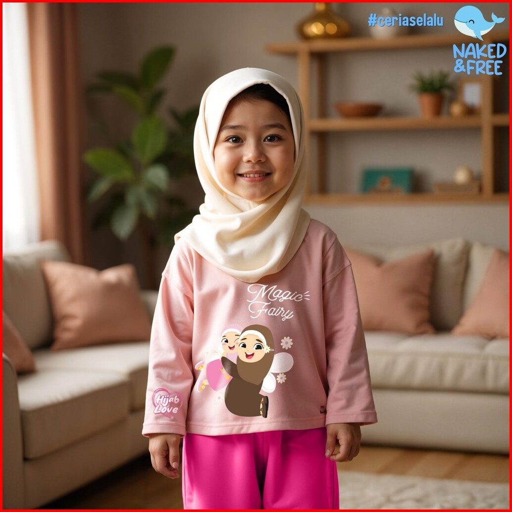 Naked Free Setelan Kaos Hijab Panjang Anak Perempuan Hijablove Series Zarra Sing Bahan Katun Hij-1
