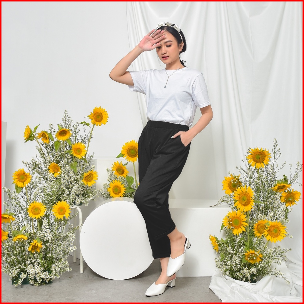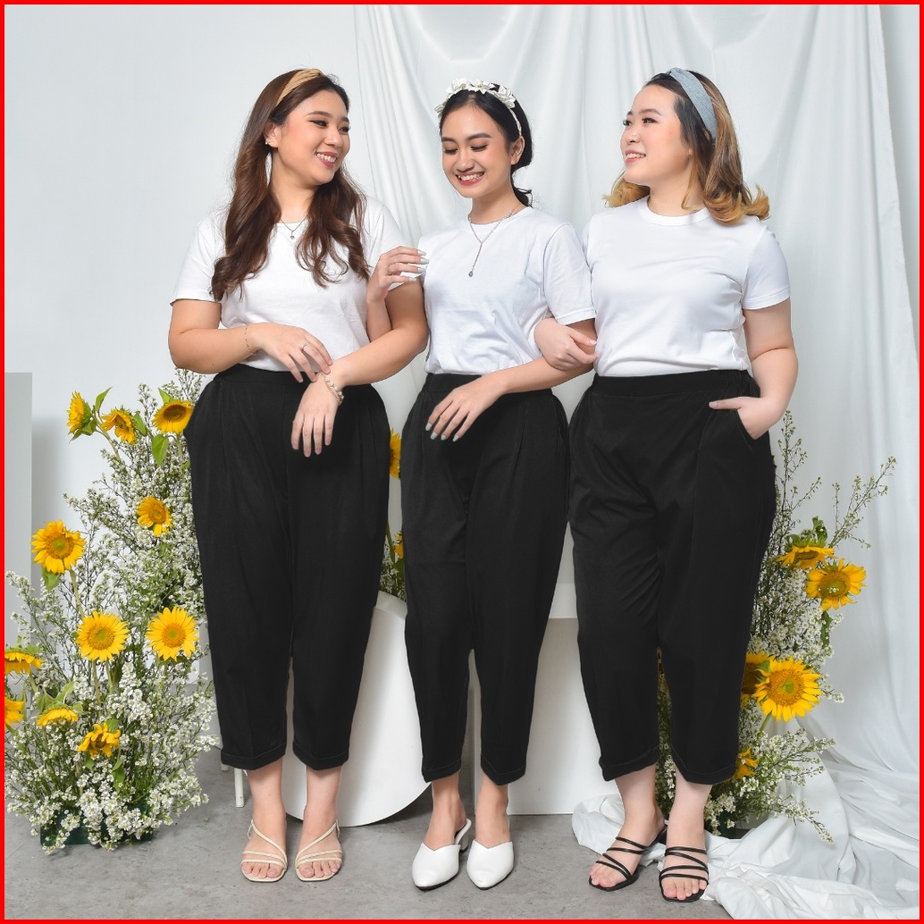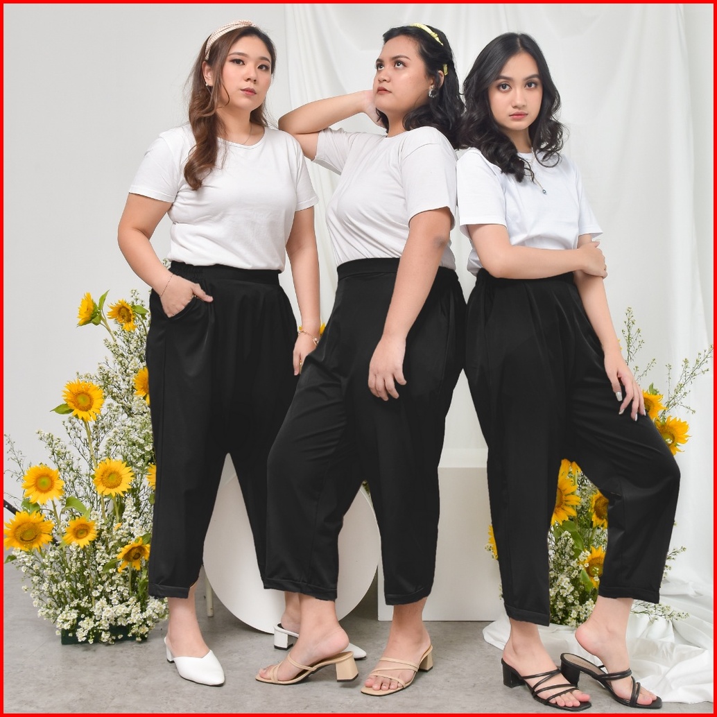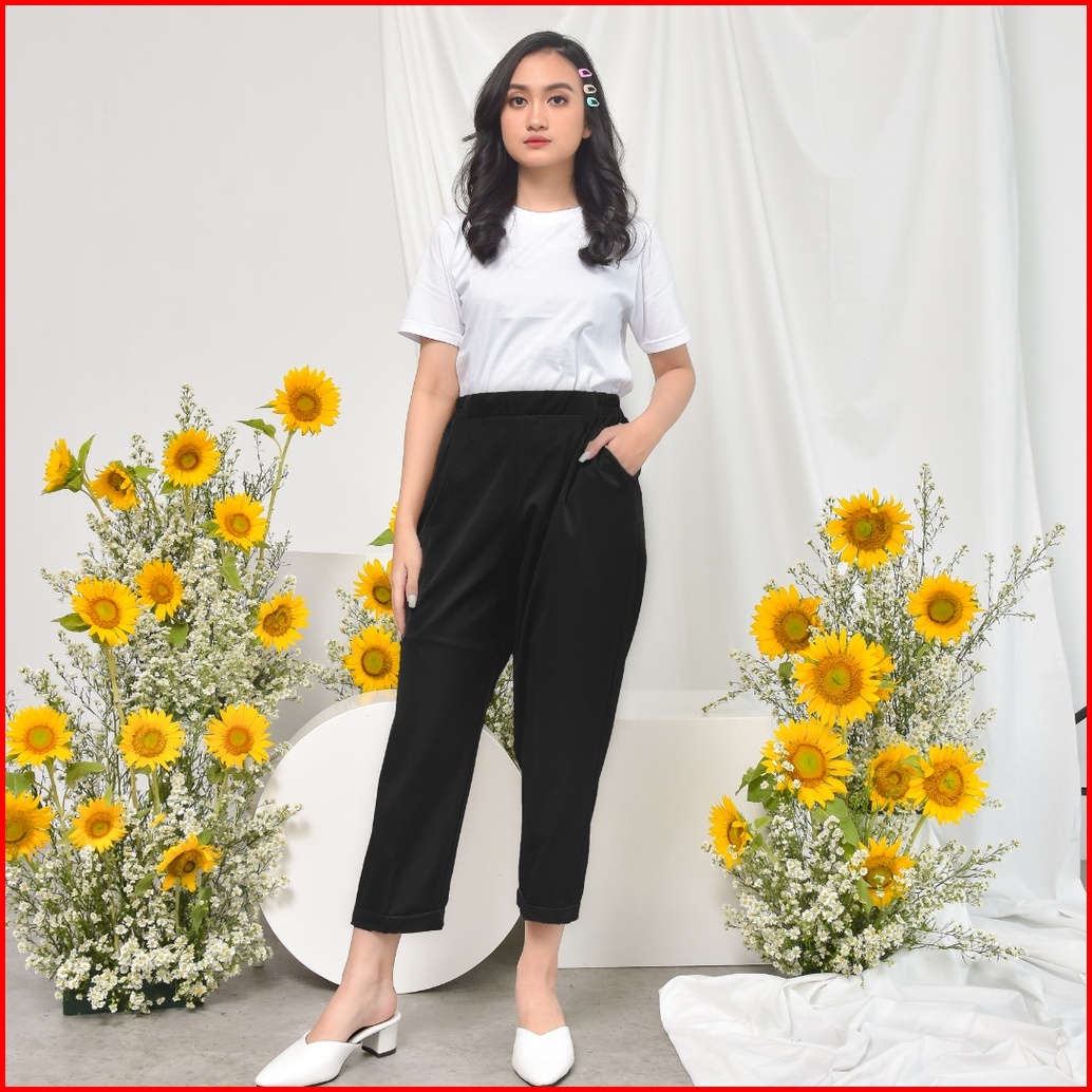 Ie.demode Karin Celana Panjang Wanita Daily Kerja Kantor Big Size Highwaist Baggy Ankle Pants Hitam