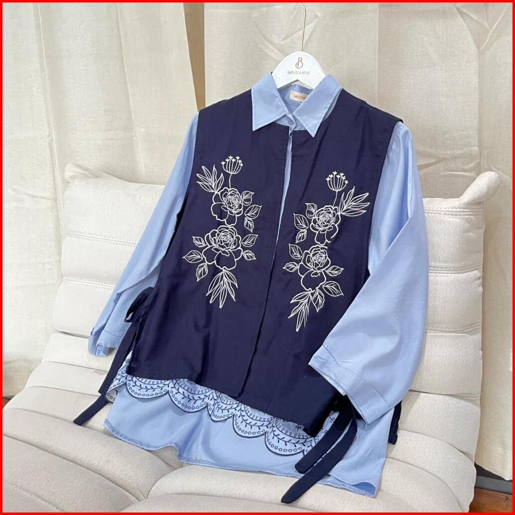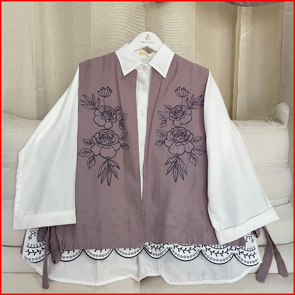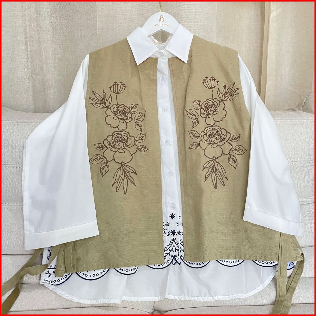 Set Kemeja Vest - Kemeja Wanita - Kemeja Lengan Panjang - Kemeja Adem - Atasan Wanita Kekinian - Atasan Kemeja Kantor -
